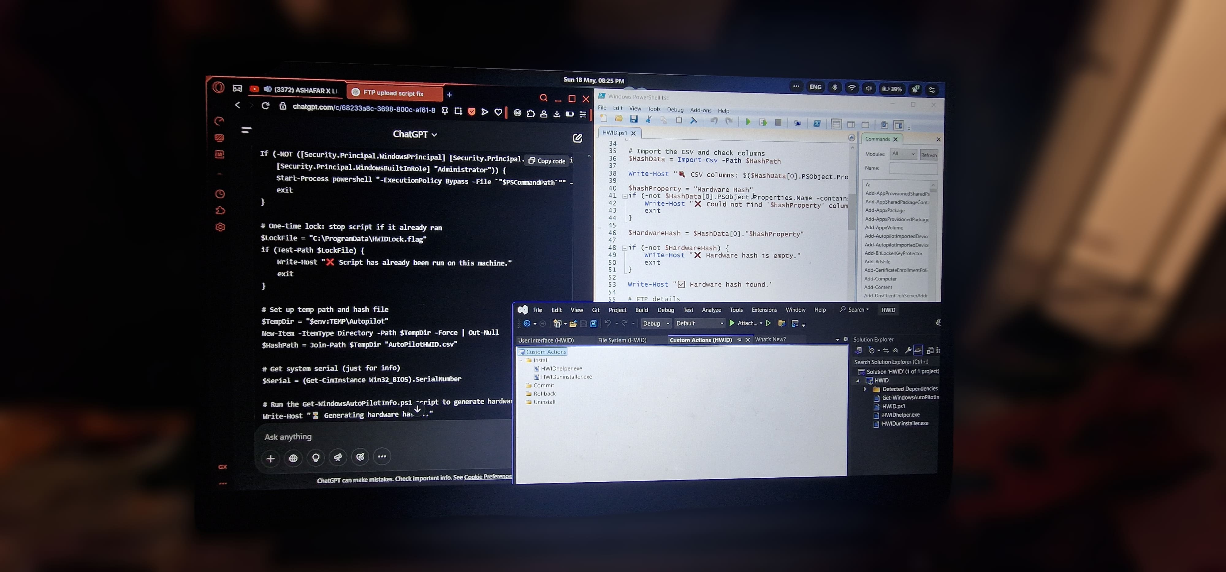 This project was created for the school PCs to automate collecting hardware information from each device and securely uploading it to an FTP server. Features include device model detection, a one-time execution lock to prevent duplicates, CSV parsing and validation to avoid sending invalid or empty data, and more.