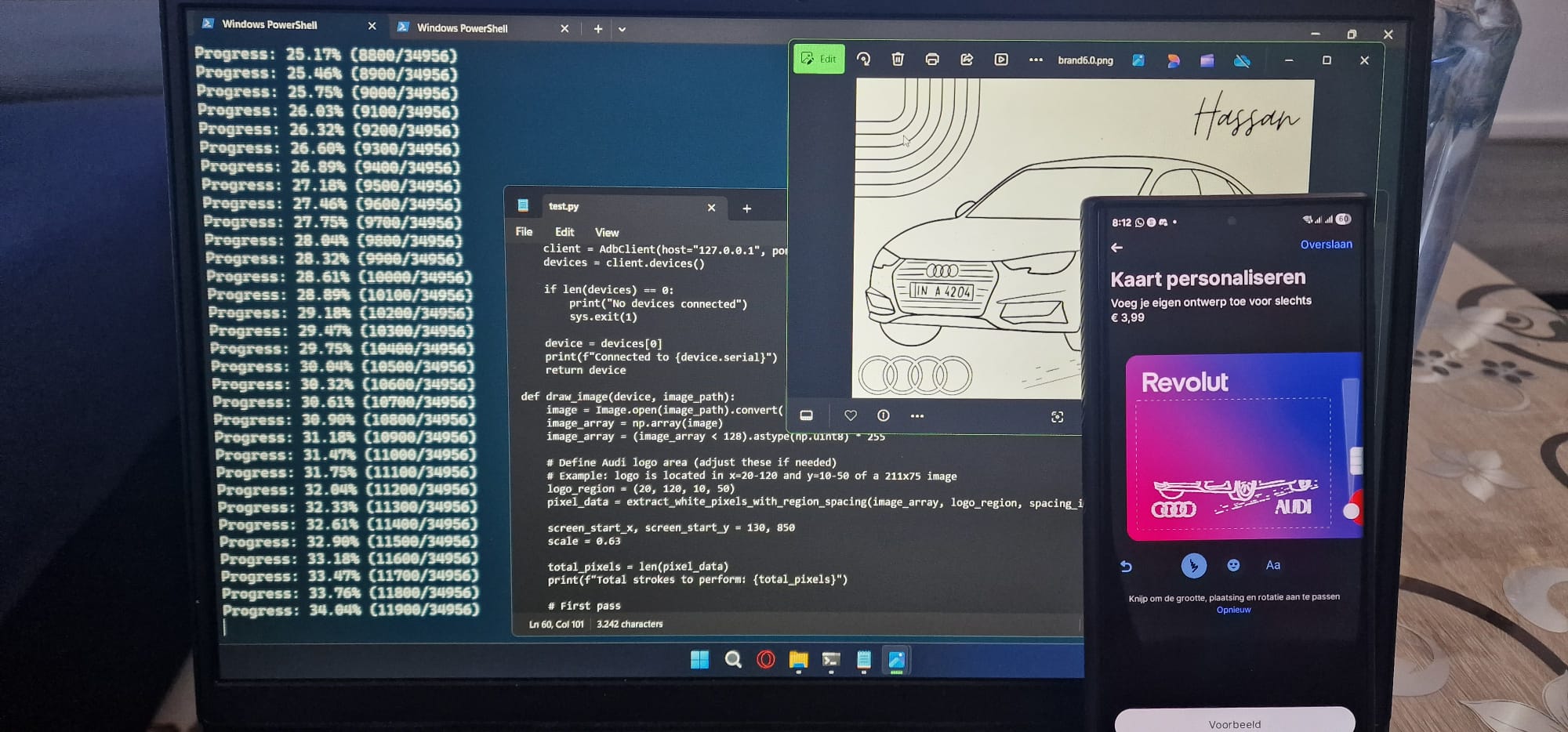 An advanced automation project that converts images to pixels using Python and automates the Revolut custom card design process through Android Debug Bridge (ADB). This project demonstrates mobile automation, image processing, and seamless system integration.